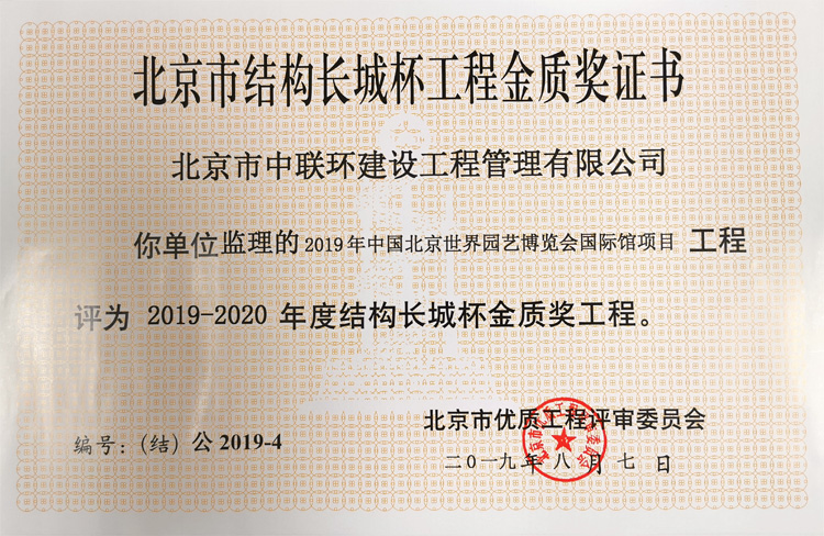 年度結構長城杯金質獎工程。